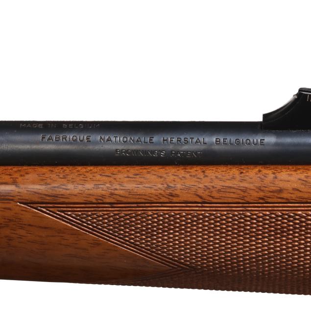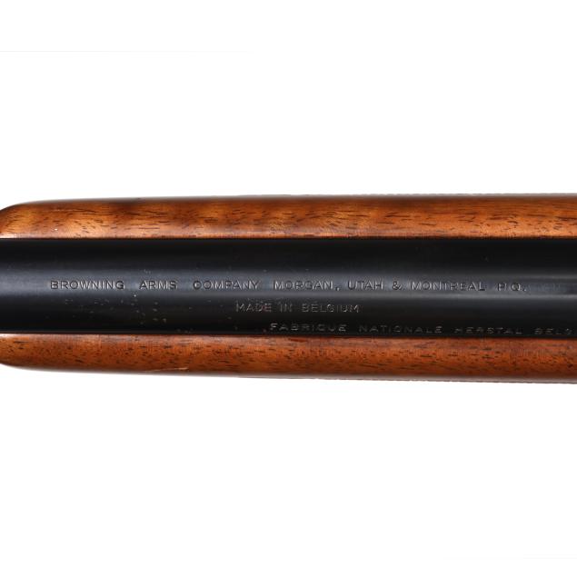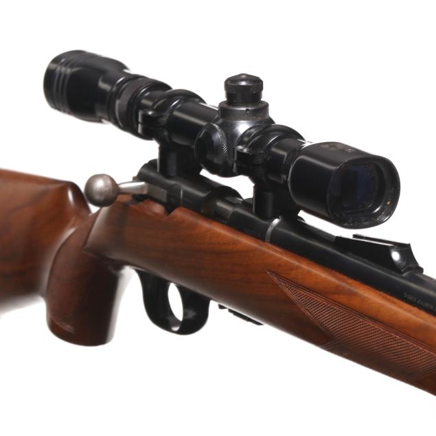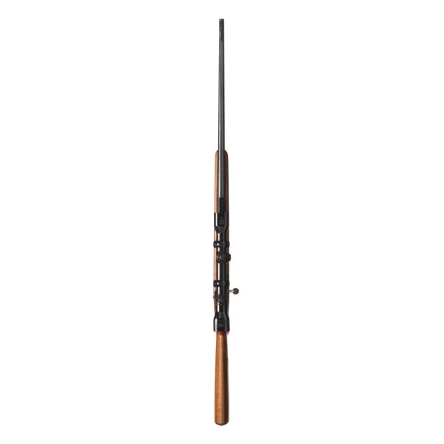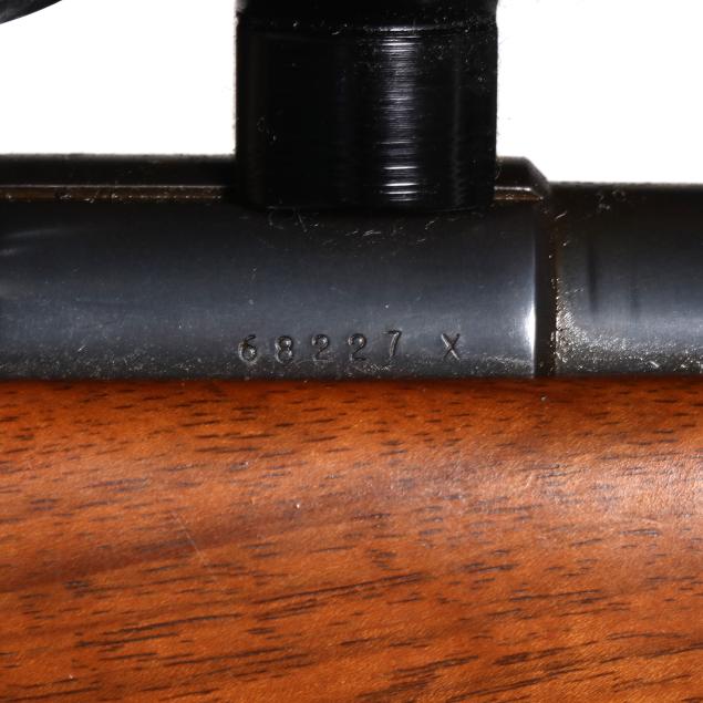 Overall very good estate condition, blued surfaces are healthy and deep with scattered light field marks, bore is dirty with discernible rifling, stock finish gives a healthy satin sheen with light evidence of use, checkering remains very clean and appropriately dry, bolt and receiver interior are gummy from old lubrication.
