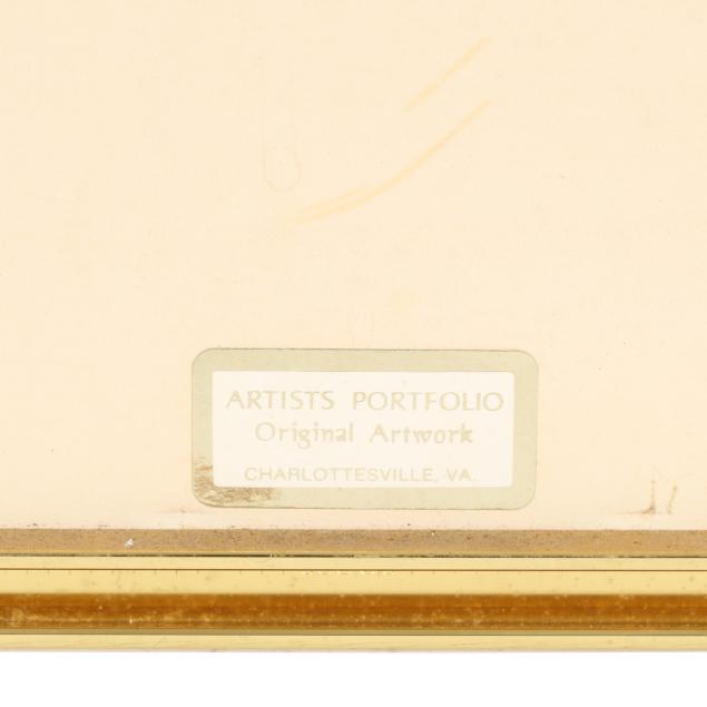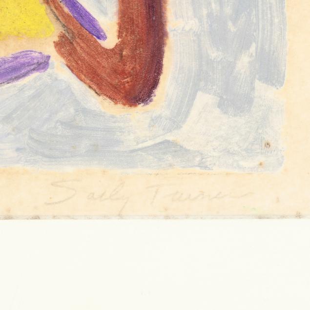 From a Private Collection, Frankfort, Kentucky Sally Turner was an American painter born Sara Sargent in Jefferson, Ohio. She studied at Wellesley College and Parsons School of Design, and continued her training in New York at the Art Students League and the Hans Hofmann School of Art. Early in her career, Turner worked in advertising on Madison Avenue and served as an artist in the U.S. Navy during World War II. In later years, she devoted herself fully to painting, exhibiting in solo shows at the McGuffey Art Center and Second Street Gallery in Charlottesville, the Foundry Gallery in Washington, D.C., the Roanoke Museum of Fine Art, and Tidewater Community College in Virginia Beach. She was married to Theodore R. Turner, retired associate professor of art at the University of Virginia.