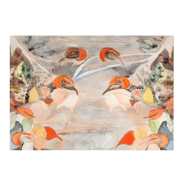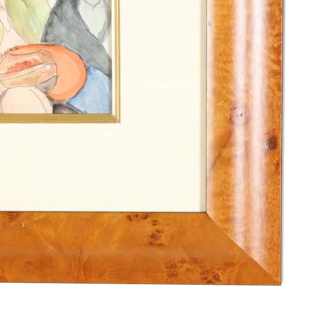 Watercolor on paper, signed at lower right, attractively presented under glass within a linen mat and burlwood frame.
