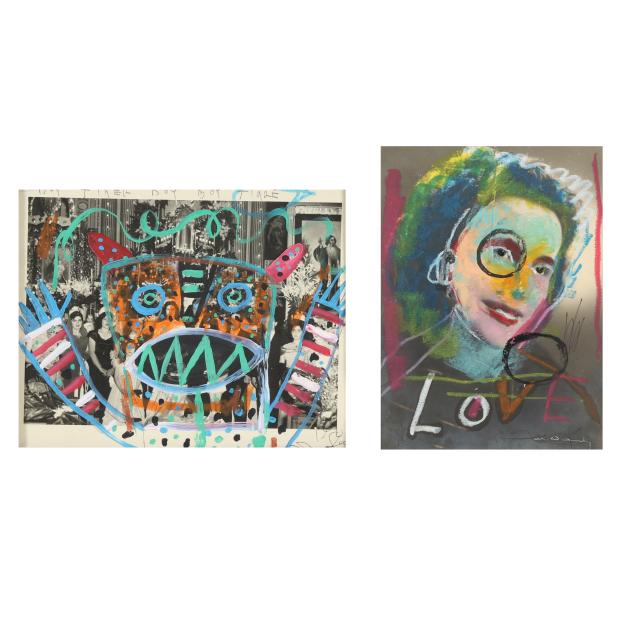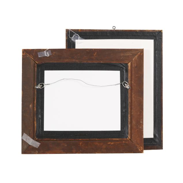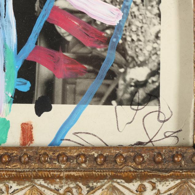The first a vintage photograph of a woman with mixed media intervening, signed, framed under glass (Frame dimensions 15 x 11 3/4 in.) (some loss to frame; crease to image); the second a vintage photograph of women in a cathedral with mixed media intervening, signed, framed under glass (Frame dimensions 12 3/4 x 14 3/4 in.) (good estate condition).
