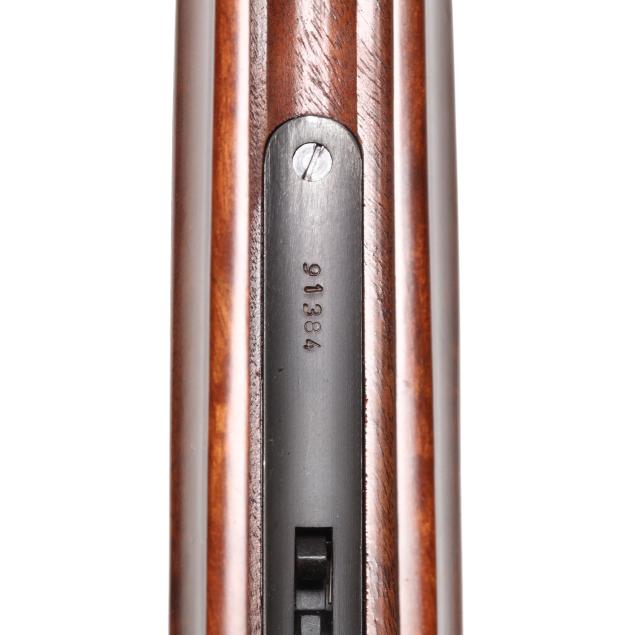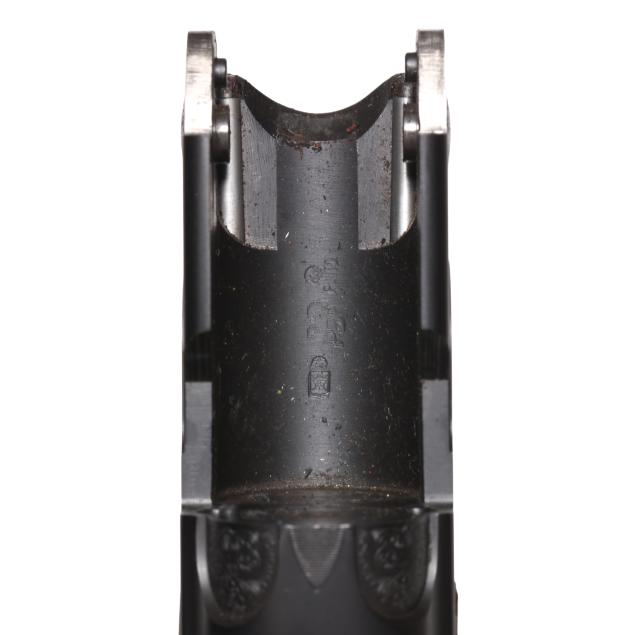 Overall excellent estate condition showing very light use, bores are bright and shiny, satin stock finish is healthy, slight blemish at right cheek and at rear right side at recoil pad.
