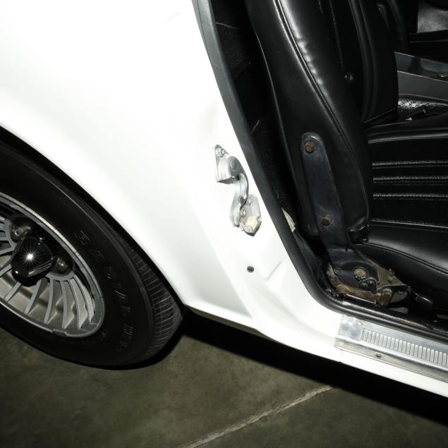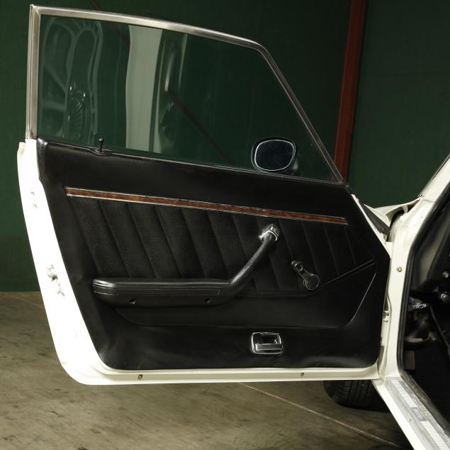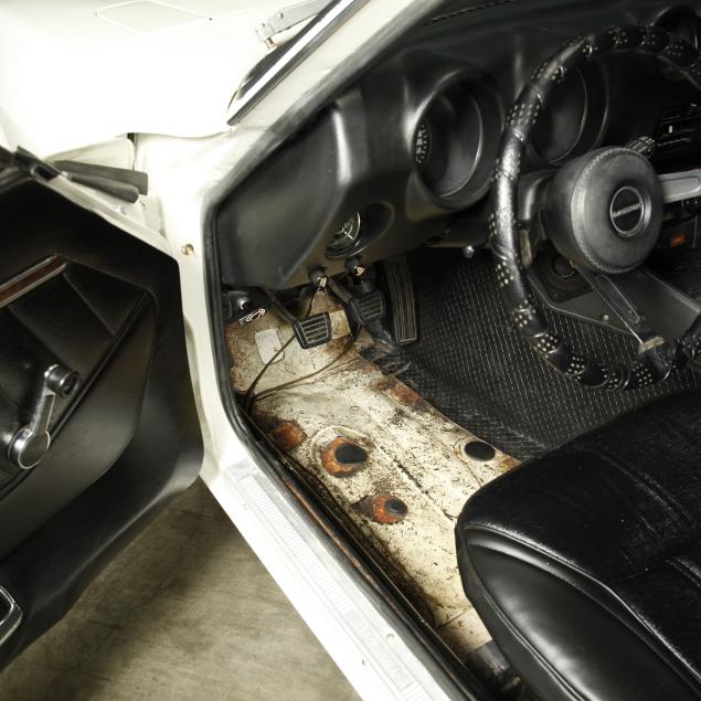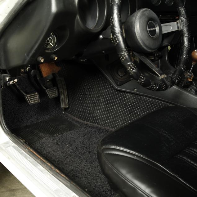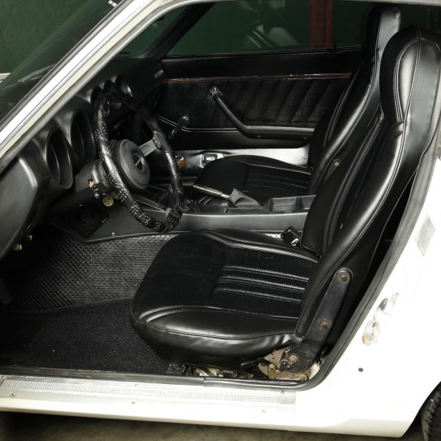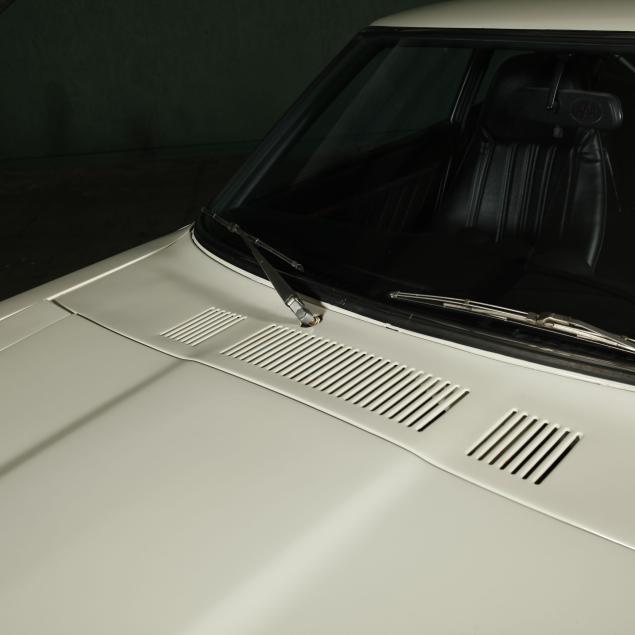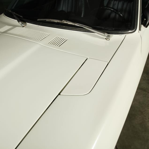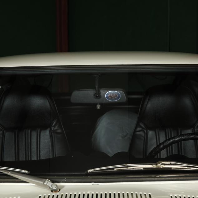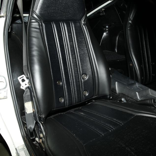 With a re-paint in the original white PPG #DBC 8060, and the interior in period black vinyl. The seats were re-covered, and carpet replaced.