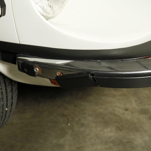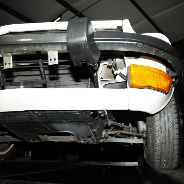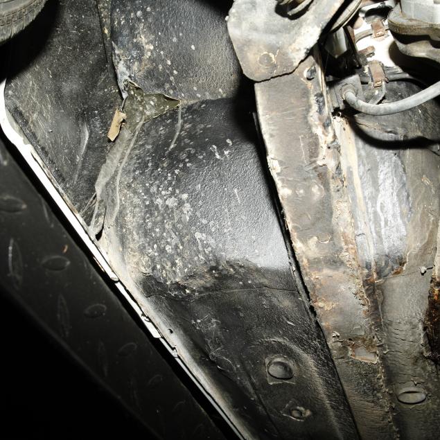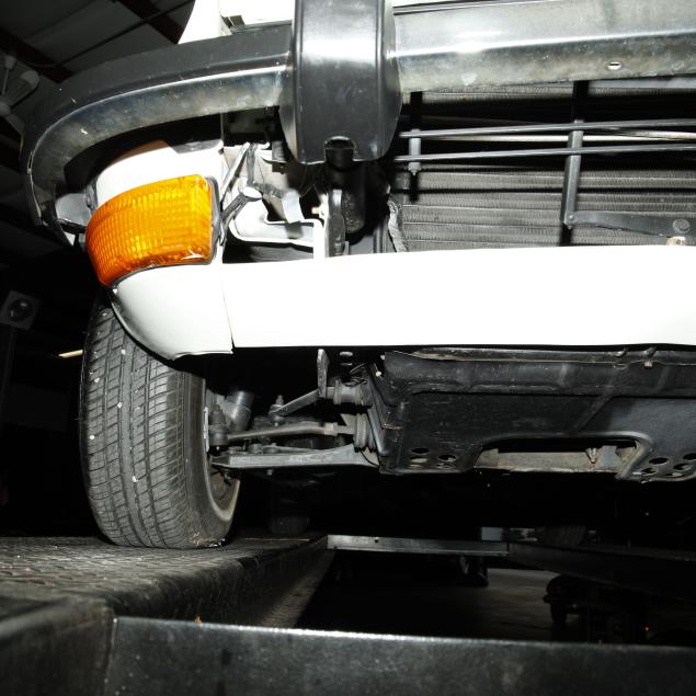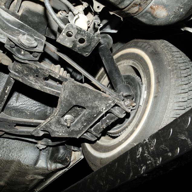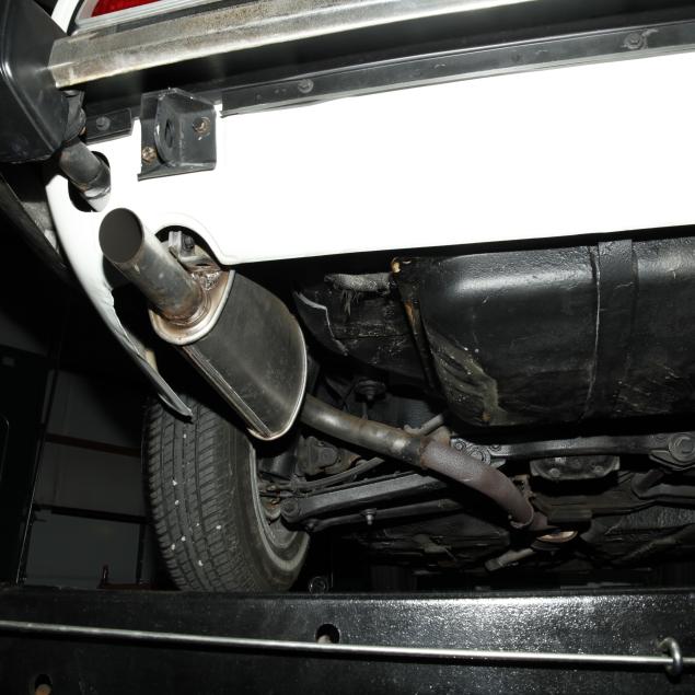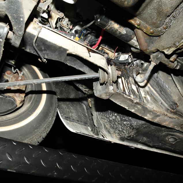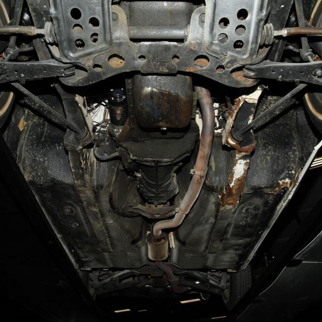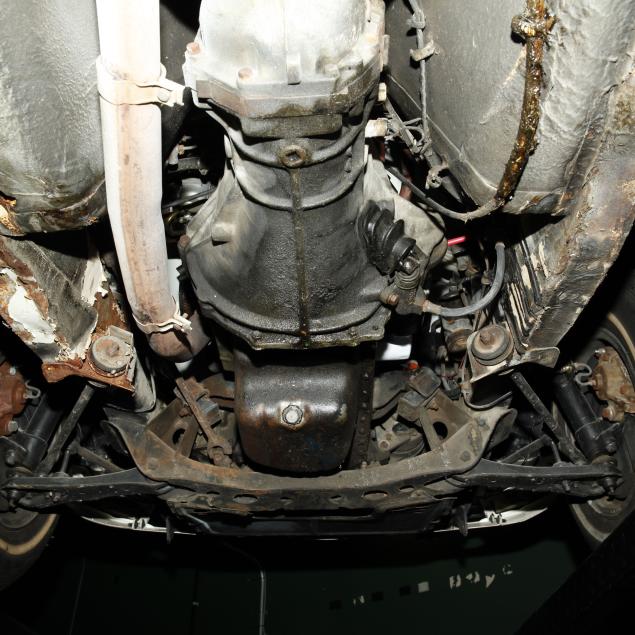 Drivers side frame rail with missing undercoat, and some surface rust is present; front bumper trim is broken in places; drivers side rear bumper rubber mount is broken, and bumper isn't straight; pancake air cleaners installed with original air cleaner box present; water temp, oil pressure, and voltmeter operating with new sensors and module; tires dated 0204, but appear like new; no other apparent concerns.