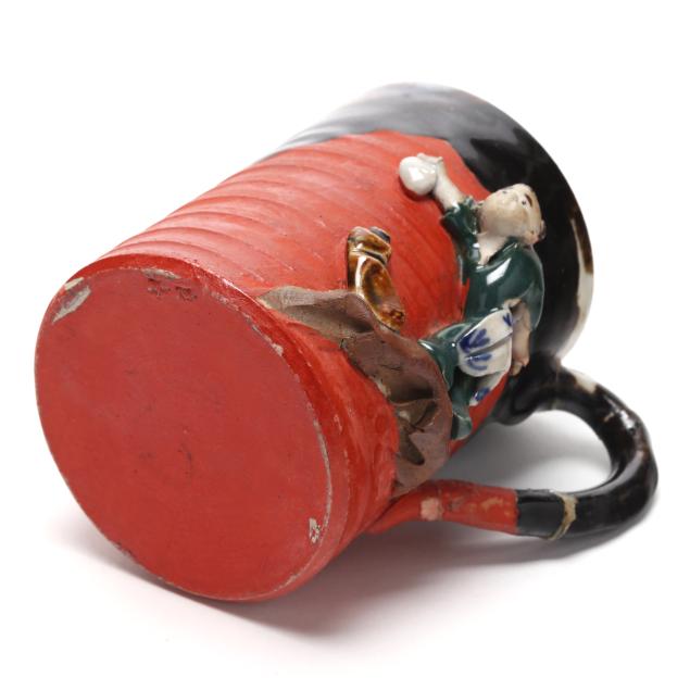 From the Collection of a Lady, Williamsburg, Virginia Sumida Gawa pottery is a distinctive type of Japanese ceramic ware named after the Sumida River near the Asakusa pottery district in Tokyo where it was first produced around 1890. The style, known for its bold colors, rich glazes, and whimsical three-dimensional relief animals and figures, was primarily created for export to the West.