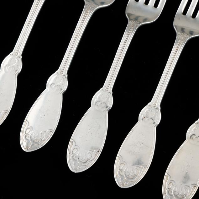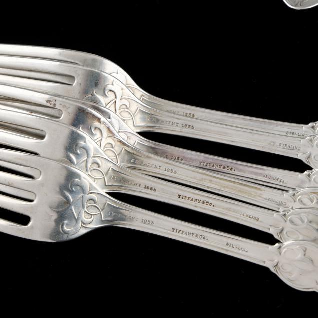 Oriental pattern, introduced in the 1860s. The pattern is inspired by Japanese and East Asian design and associated with the Aesthetic Movement. Although pieces are marked only TIFFANY & CO., Polhamus is credited through historical records for cutting the dies that made the pattern possible.