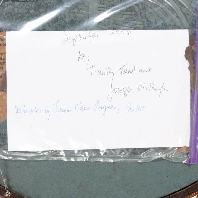 Watercolor on paper, not signed, with artist attribution inscribed to verso paperwork, presented in a carved ovoid gilt frame below glass.