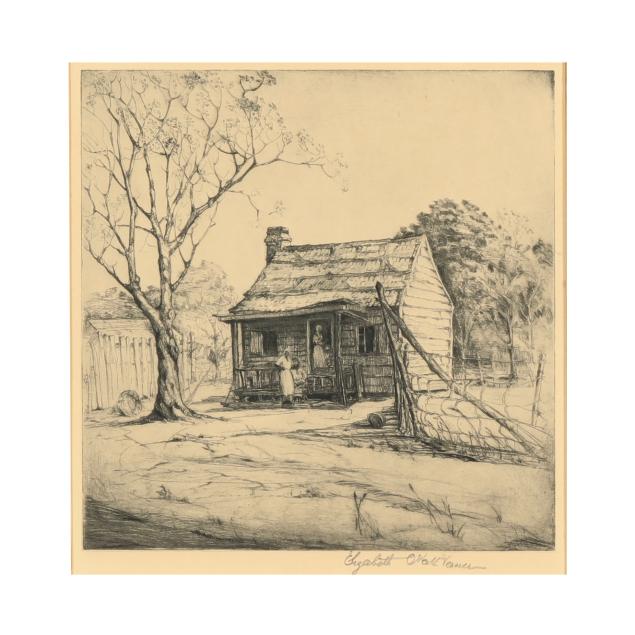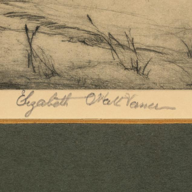 Offset lithographic print after an etching, bearing pencil signature at lower margin, retaining labels to verso, matted and framed below glass.
