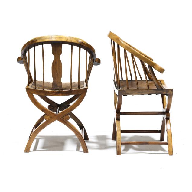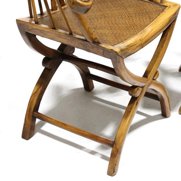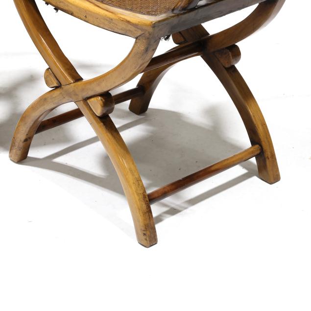 Second half 20th century, scrolled knuckles, woven grass seat, curule form base with turned spindles.