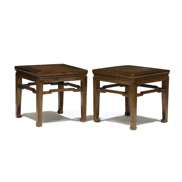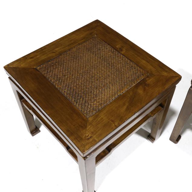 Pair of Chinese Grass Panel Side Tables
