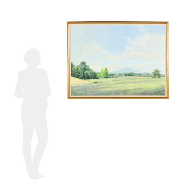 Oil on canvas, signed at lower right, retaining artist and exhibition label to verso, framed.