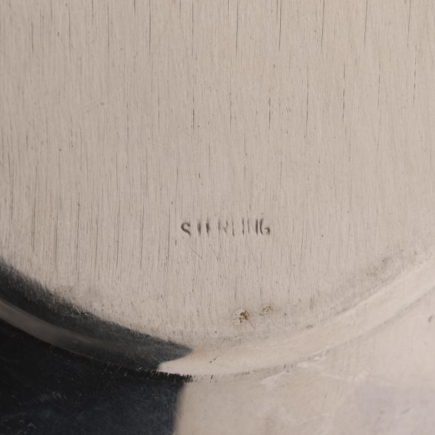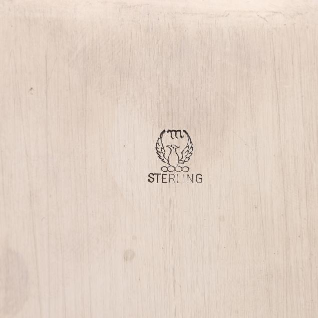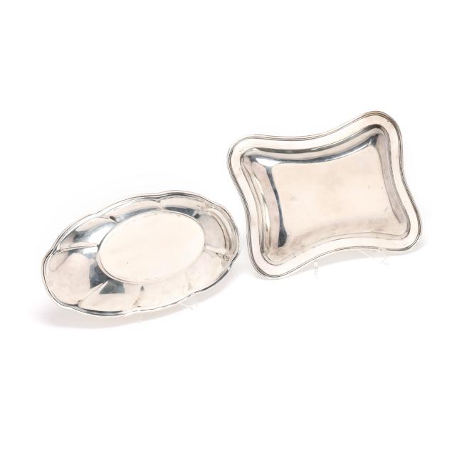 The first, and oval bread tray, marked "Sterling" (6 3/4 x 12 in.); the second, mark of Meriden Brittania Co., pattern number 851, shaped rectangular form with a reeded rim (8 1/2 x 10 3/4 in.); neither monogrammed.