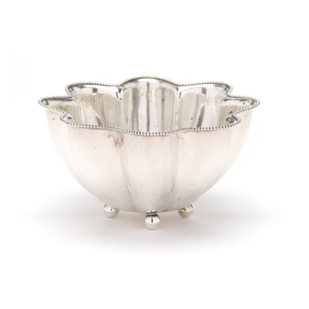 Pattern number 4866, the star lobed form bowl with a bead course rim, raised on four ball feet, not monogrammed.
