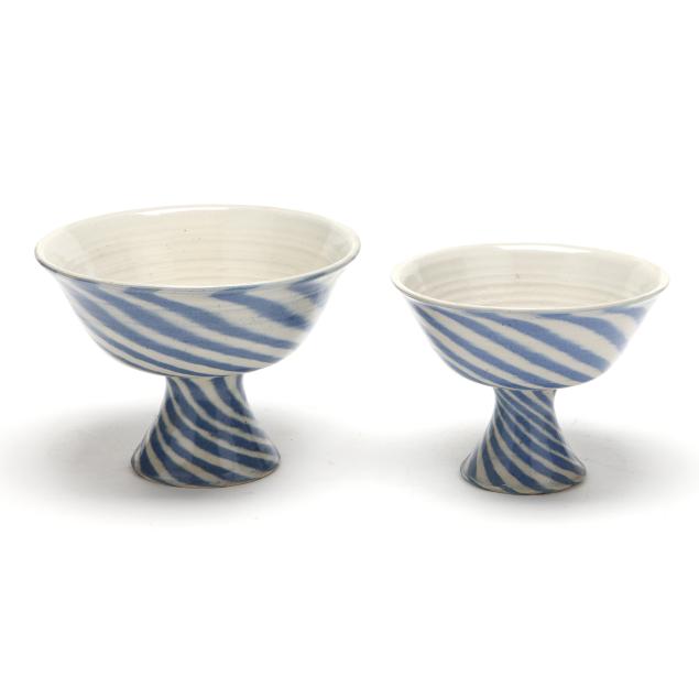 charles-lisk-vale-nc-b-1952-two-swirl-pottery-footed-bowls