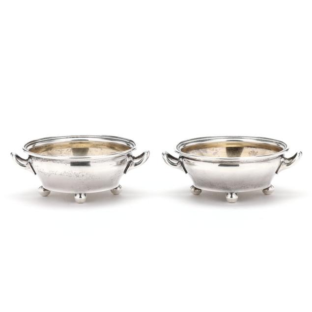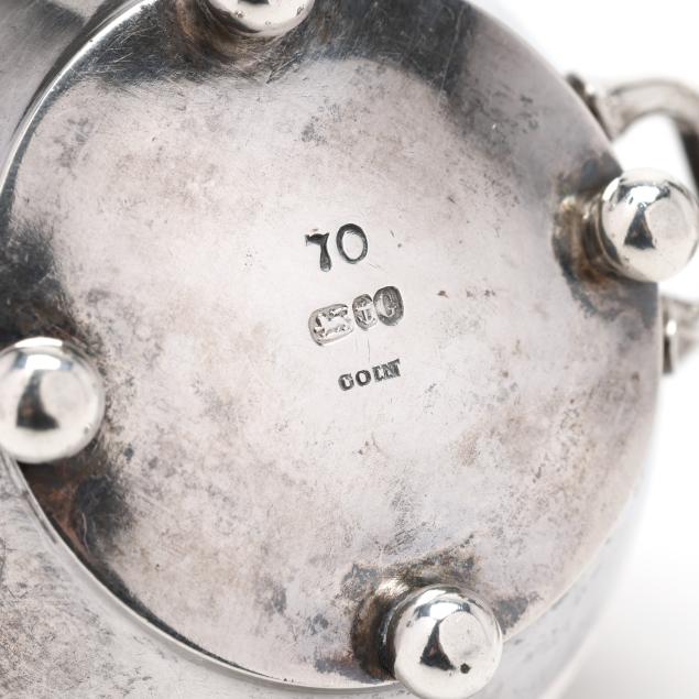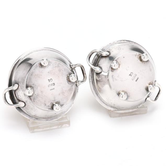 Circa 1855-1860, pattern number 70, each in the form of a pale with a reeded rim, gold wash bowl, and four ball feet.