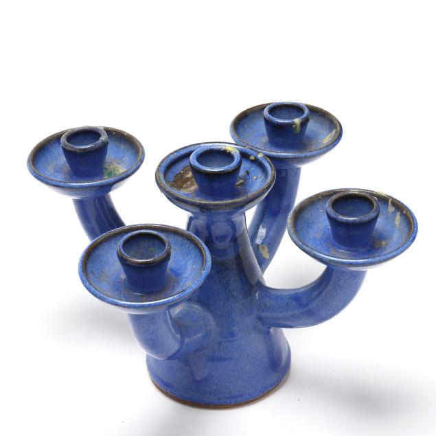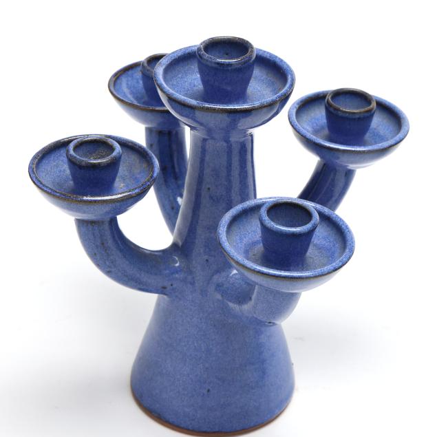 Charles Lisk (Vale, NC, b. 1952), Two Blue Pottery Candelabras