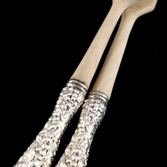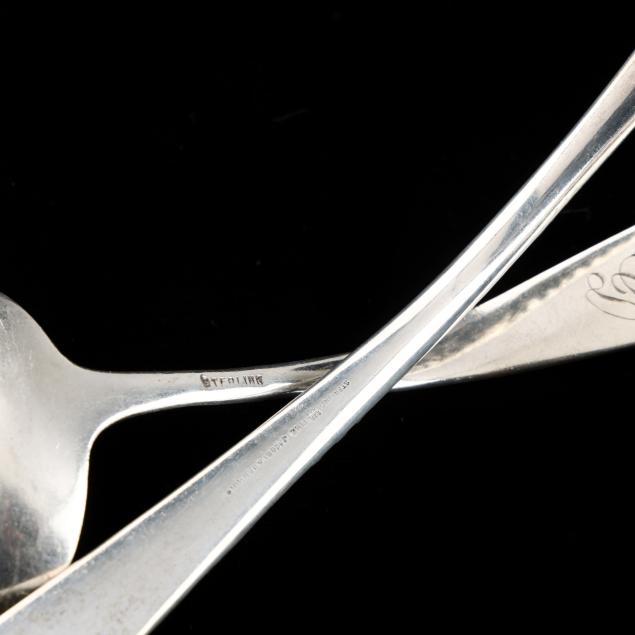 Includes a soup or punch ladle by Jacobi & Jenkins; and a Stieff Rose cake breaker; salad serving set; and gravy ladle; the ladles monogrammed.
