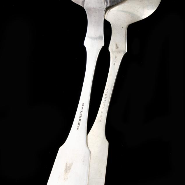 Includes tablespoon with incuse mark of William Kendrick; and a place spoon with incuse marks "Coin / Wm Kendrick & Son", neither monogrammed.