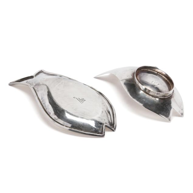 Two Mexican Sterling Silver Fish Ashtrays