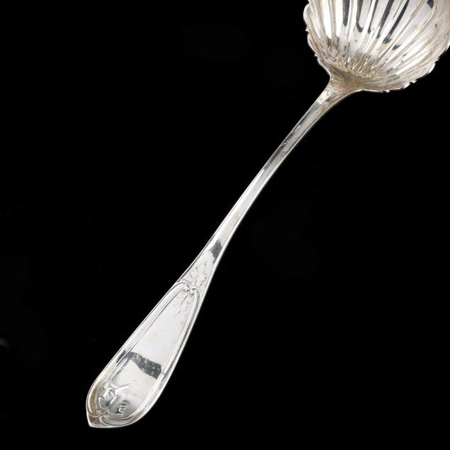 pattern, featuring a shell form bowl, monogrammed to verso handle.