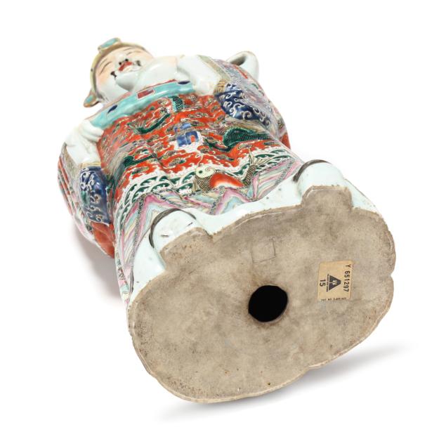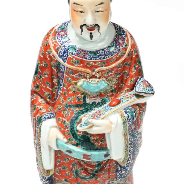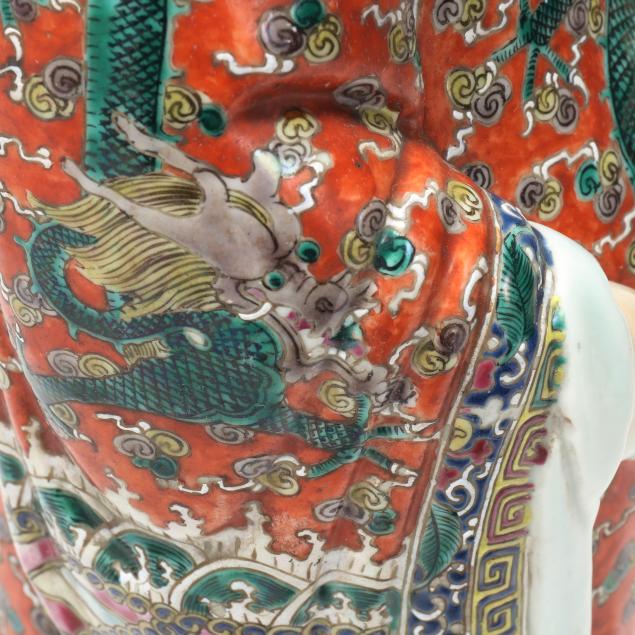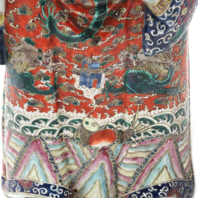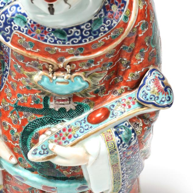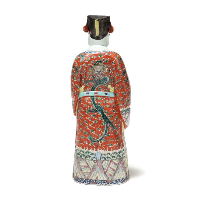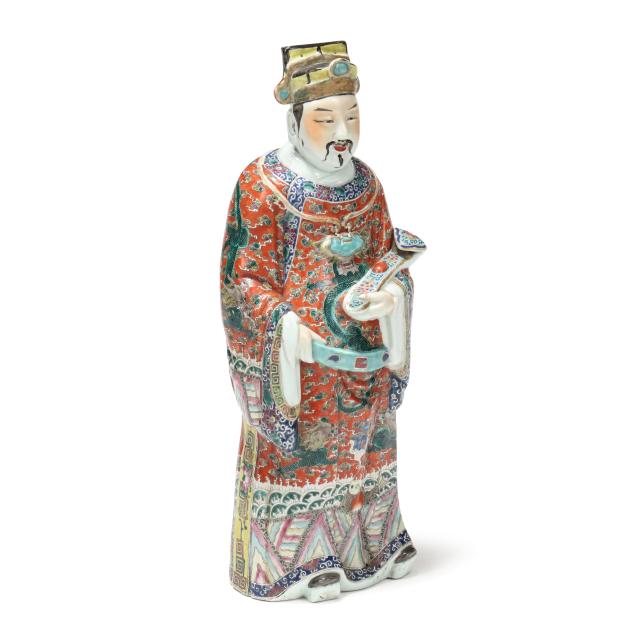 Republic period (1912-1949), a porcelain standing figure hand-painted in vibrant famille rose palette, he holds a