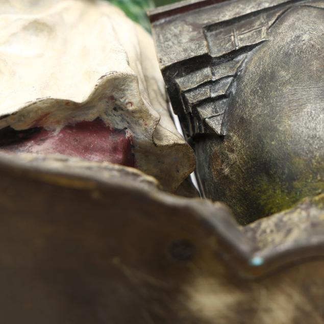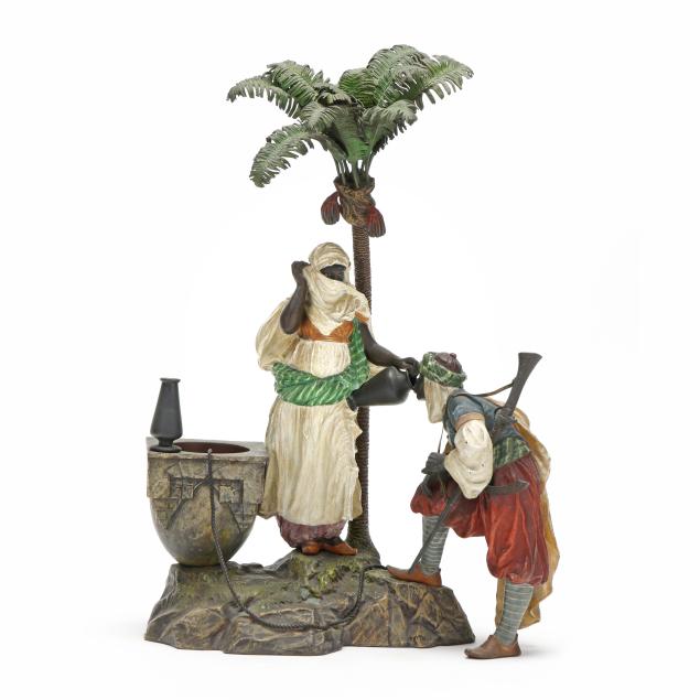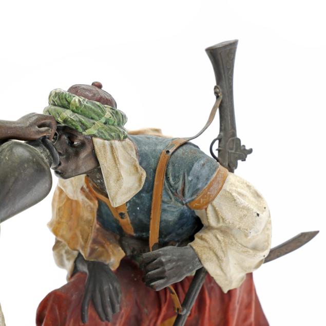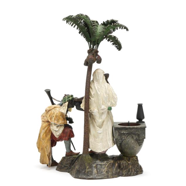 Born in Gablonz, Franz Bergman (also spelled Bergmann) Senior worked in Northern Bohemia as a metalwork chaser and finisher, and later in Vienna where he founded a small bronze factory in 1860. His son, Franz Xaver (also spelled Xavier), opened a new foundry at the turn of the Century. His works are recognized for their fine detail, cold-painted work, with subjects ranging from naturalistic Orientalist genre and religious themed scenes, erotica, and depictions of animals.