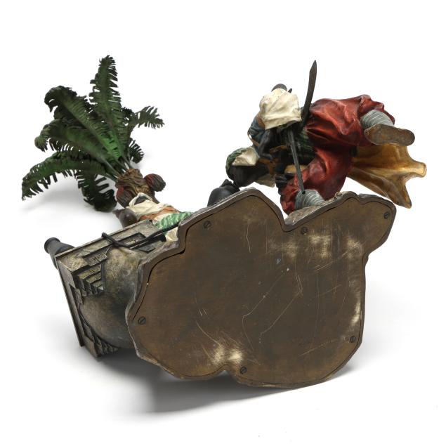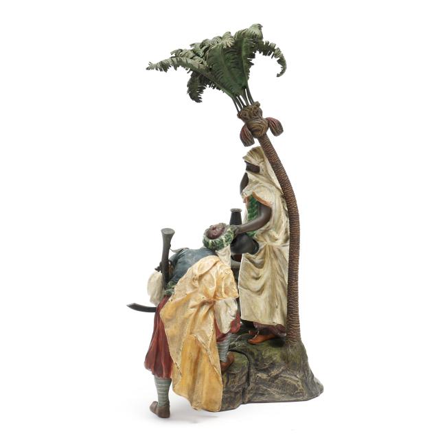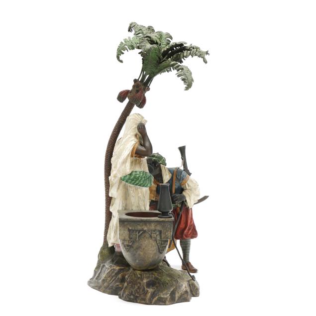 Vienna, circa 1900, cold-painted bronze, with impressed stamps "GESCHUTZT" and "1044" to the posterior rockwork, and similarly stamped to both figures' undersides.