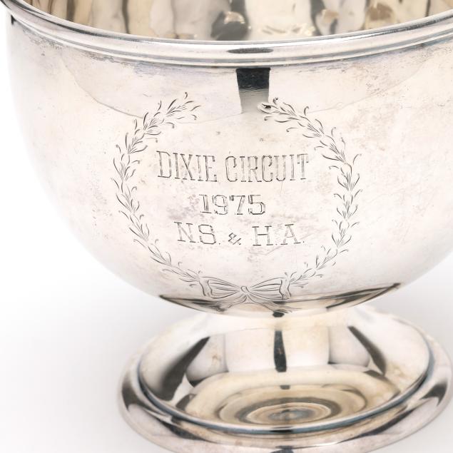 Canadian, mid-20th century, pattern number 10 / 14, engraved "Dixie Circuit / 1975 / NS & HA", with armorial monogram to the verso, raised on a pedestal foot.