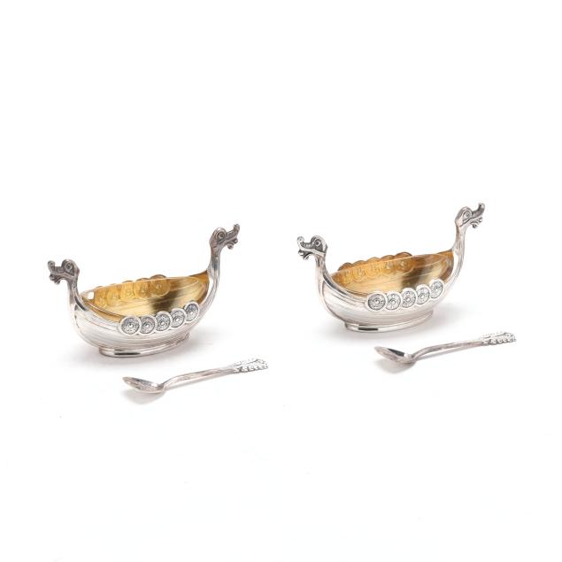 Pair of Norwegian Silver Viking Ship Master Salt Cellars