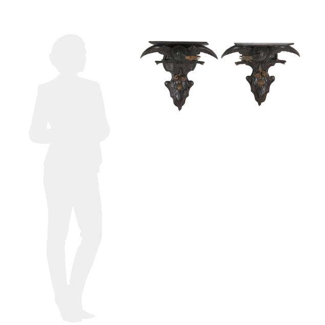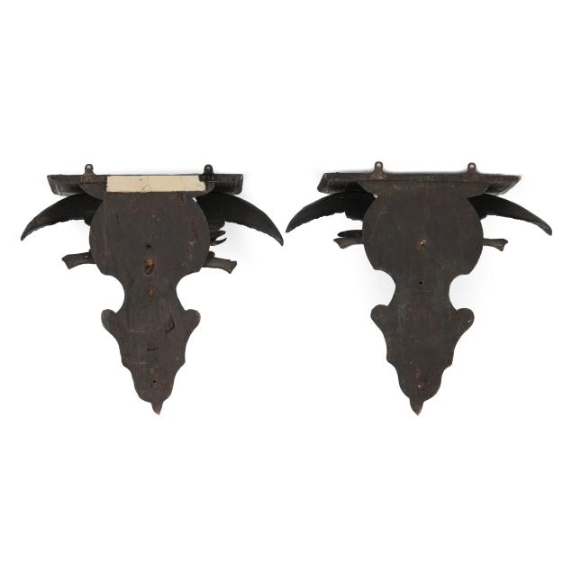 Private Collection, Winston-Salem, North Carolina Both with remounted eagles and floral bunches; break and repair to one eagle wing; looseness and break to eagle mounts at feet; losses to leaves of both bunches; scattered nicks and spotting to both.