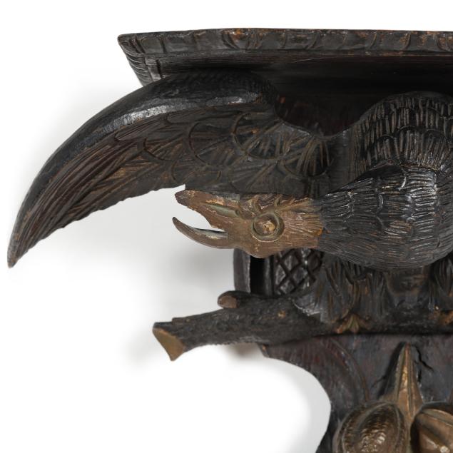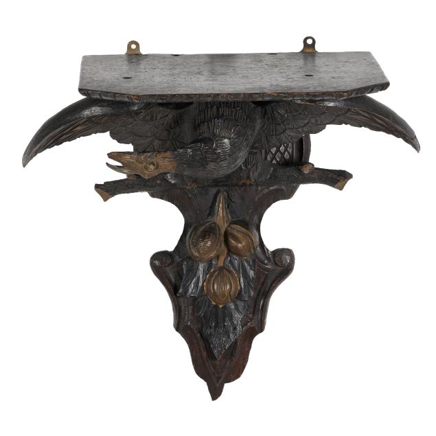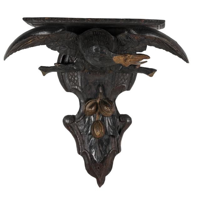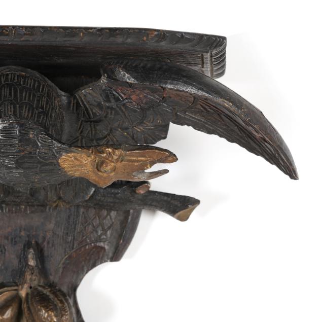 Late 19th to early 20th century, carved and giltwood bracket supported by spread winged eagles perched above a flower bunch, with newer hardware, unmarked.