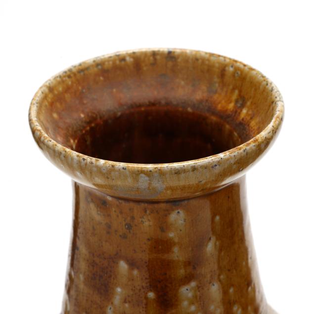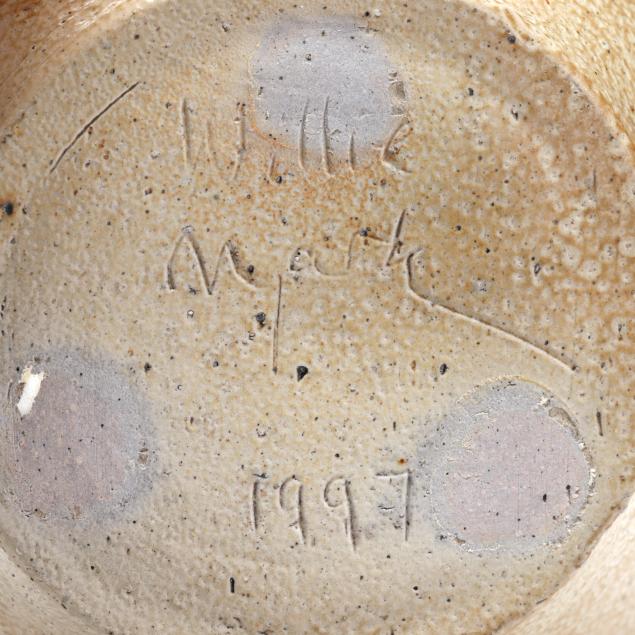 In 1983 they moved to Pittsboro, NC and set up their pottery. Mark built a very large wood kiln and began making the distinctive functional pots for which he is known, specializing in very large planters and jars, along with finely made smaller items. He uses local clays and blends the different North Carolinian folk traditions together into a contemporary style that has attracted a sizable following.