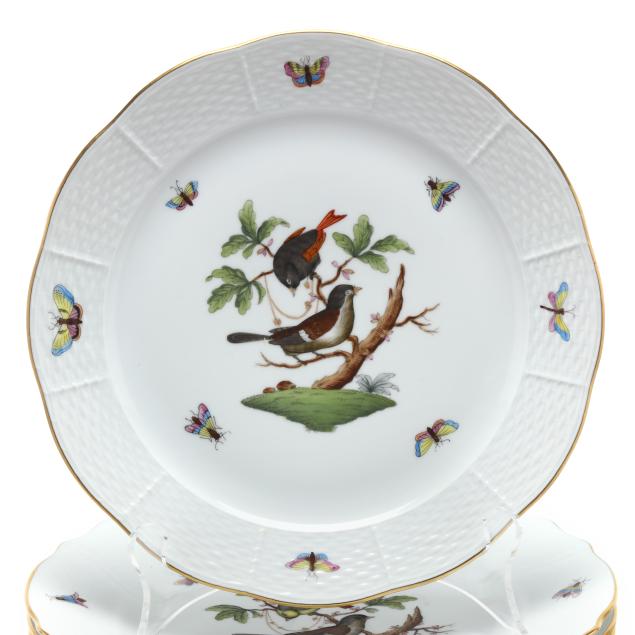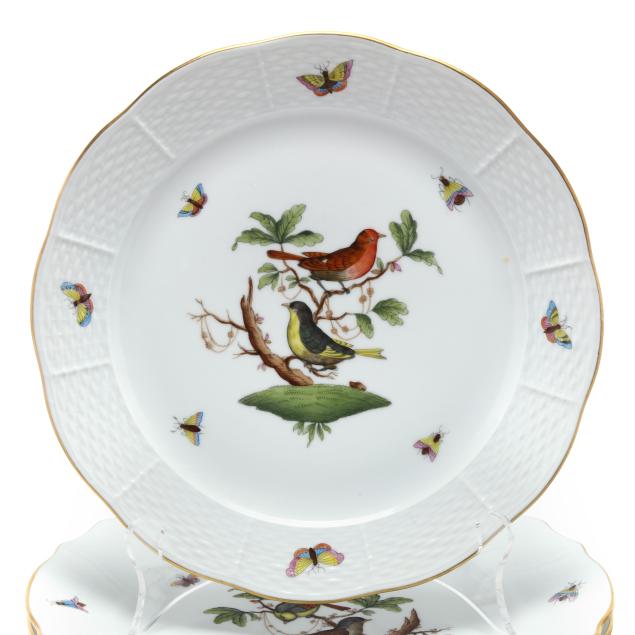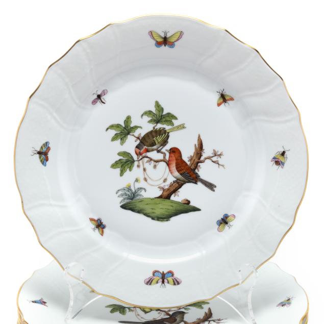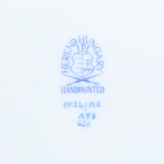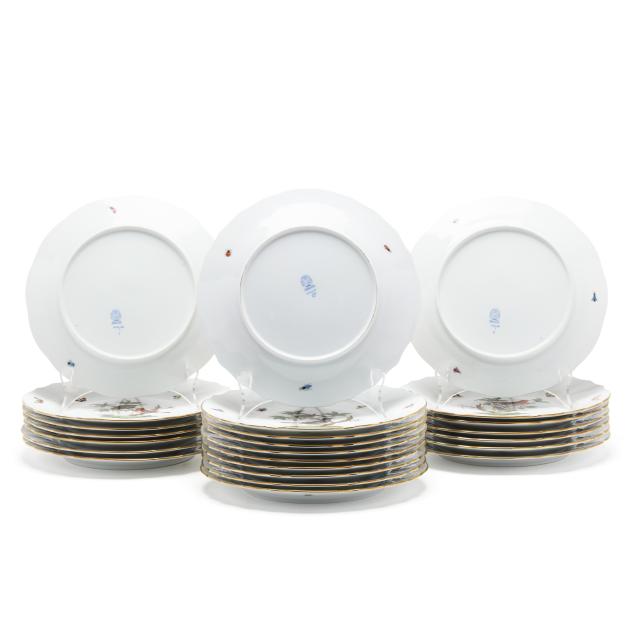Hungary, hand-painted and gilt porcelain, (24) plates including (22) #1524 plates (10 1/4 in. diameter) and (2) #524 plates (10 in. diameter), all marked with company backstamp to underside.