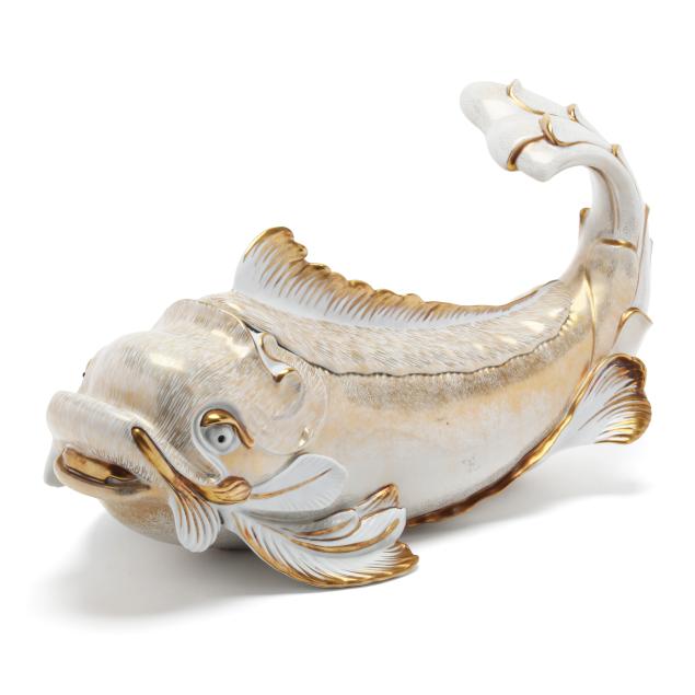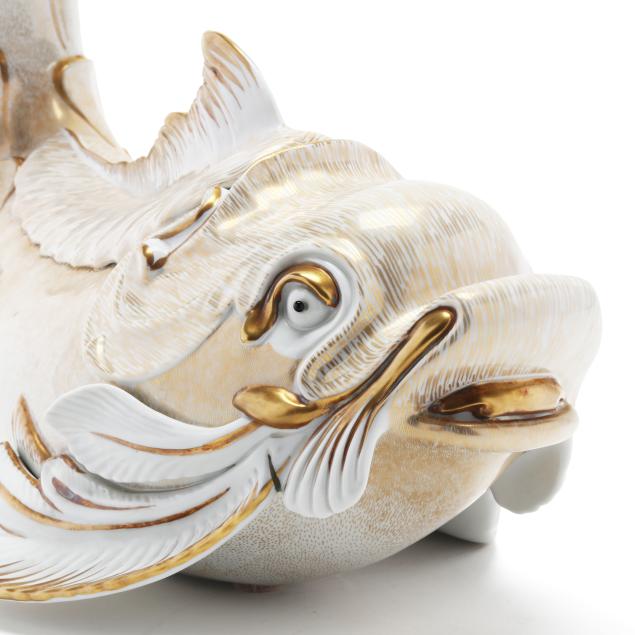 Italy, 1970s, hand-painted gilt porcelain, labeled to underside of each fin.