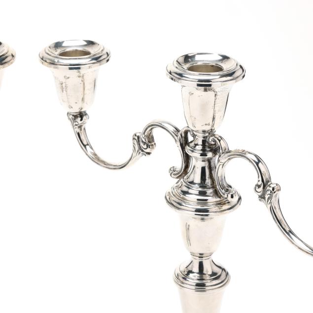 Second half of the 20th century, marked "Gorham / Sterling" and with model number 1130, convertible three-light form, weighted base.