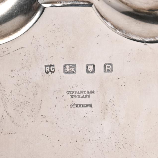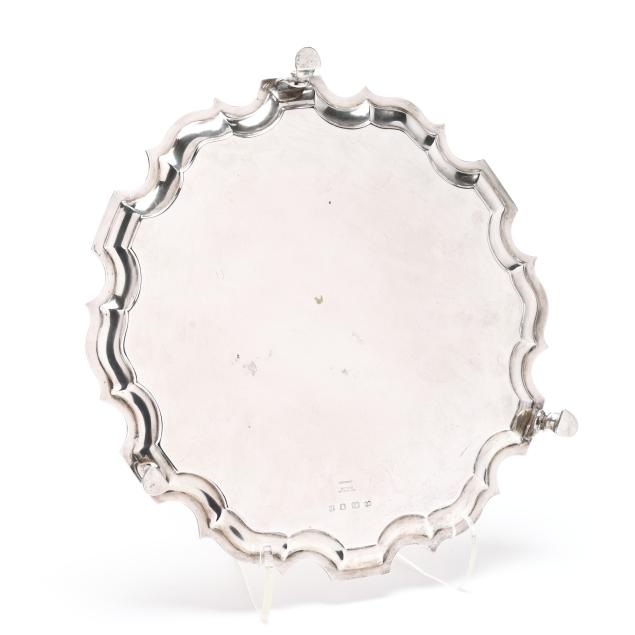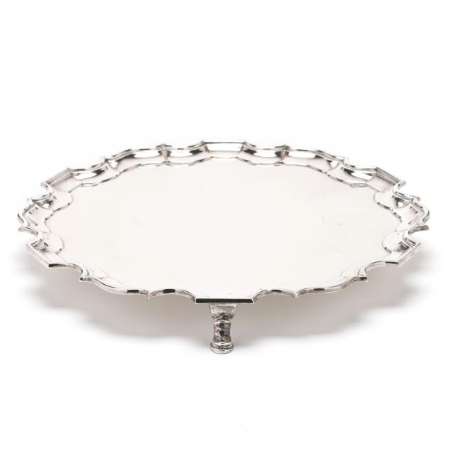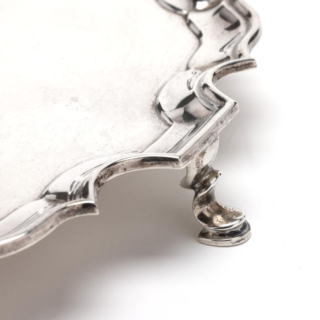 Mark of William Comyns & Sons Ltd. (London, 1950), in the Georgian style with a shaped rim, raised on three hoofed feet, not monogrammed.