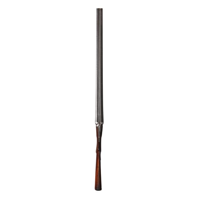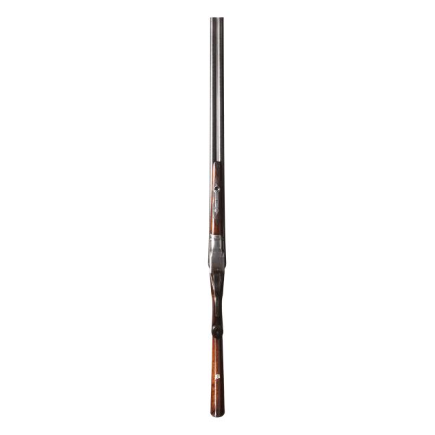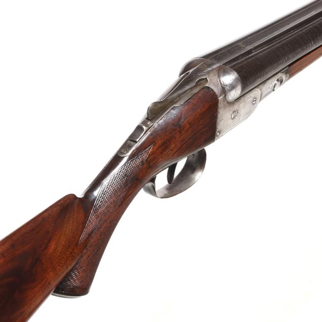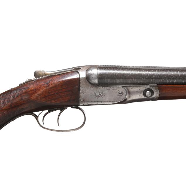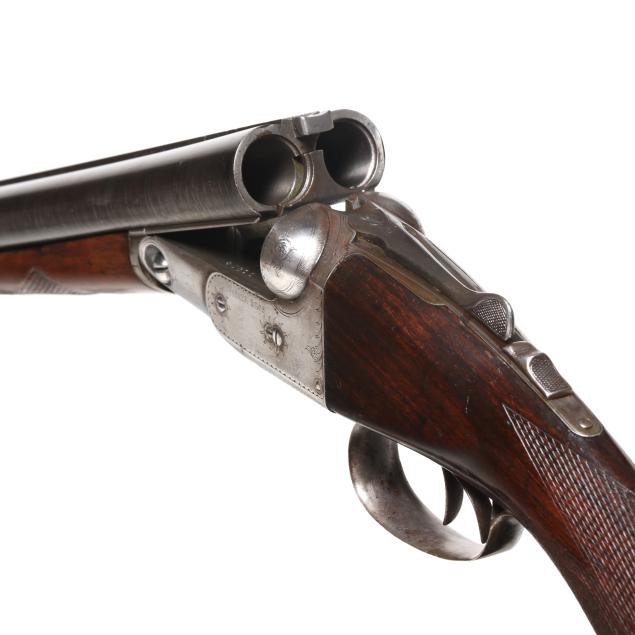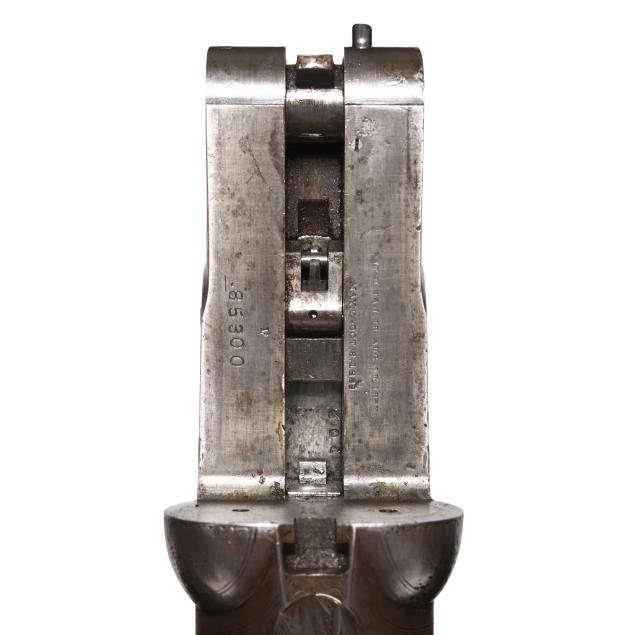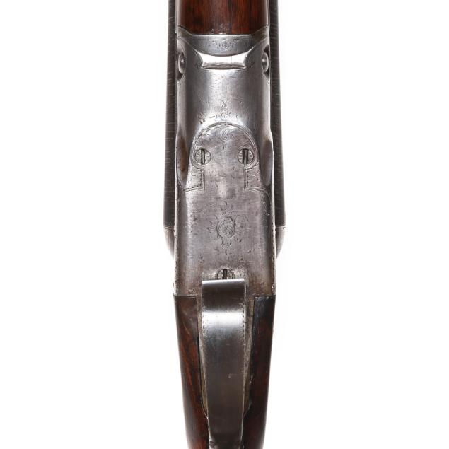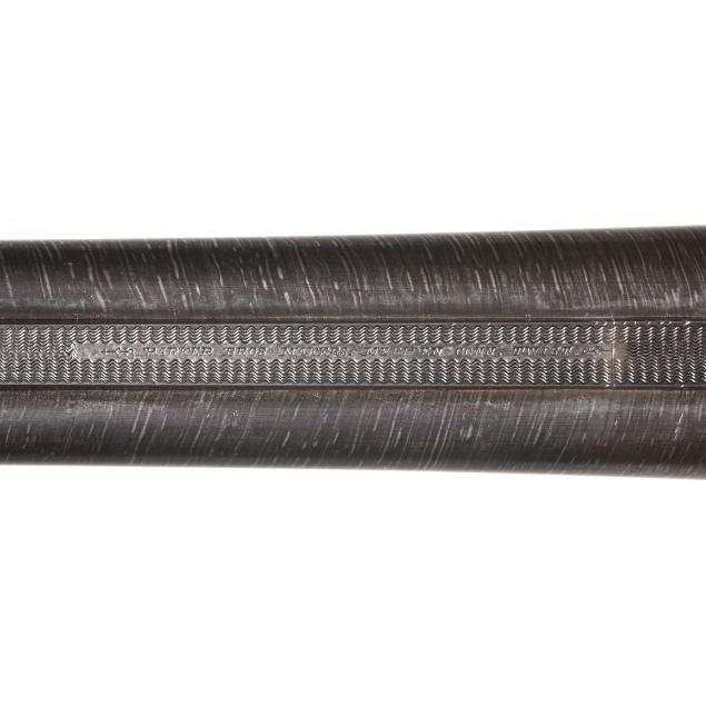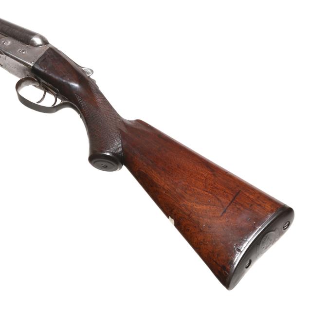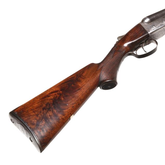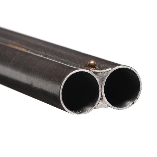 Overall fair estate condition, bores are bright and shiny with the presence of shallow scattered pitting and visible twist surface, barrel ring with a clear yet slightly muted tone, barrel to action fit is slightly loose, twist refinished to attractive contrast, color casing colors remain on protected areas only, receiver engraving is clear and undiminished, light screw slot damage, stock set refinished over the top of historical dents and marring, checkering remains clean and useful.
