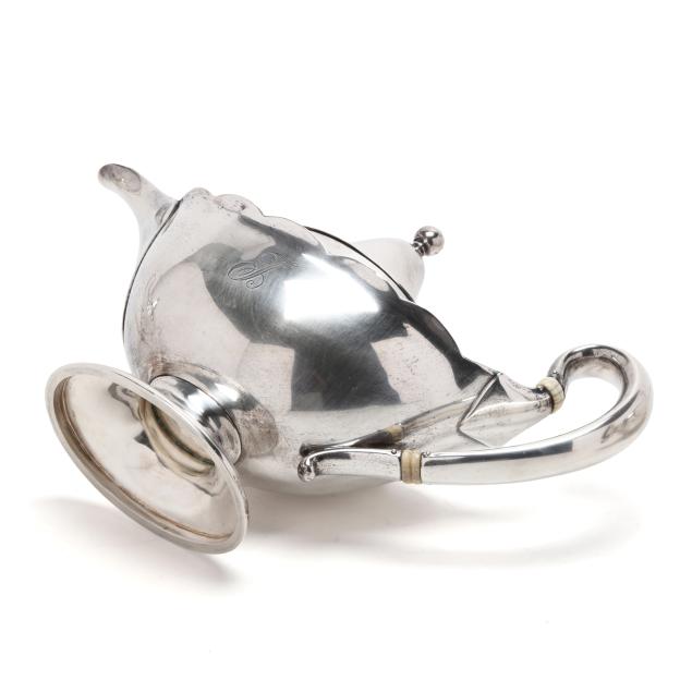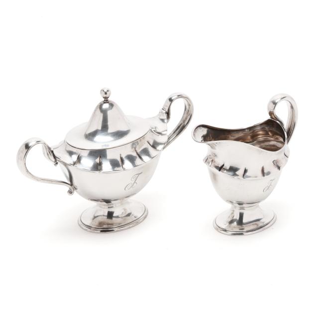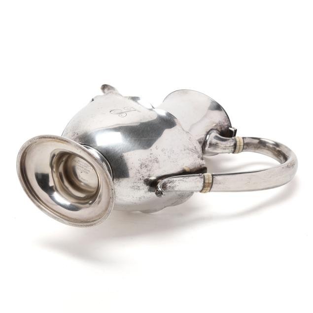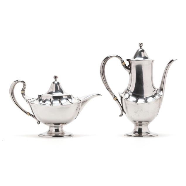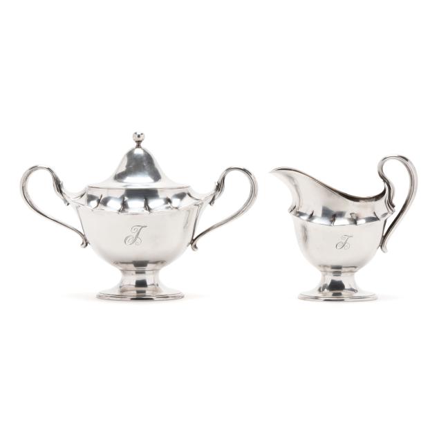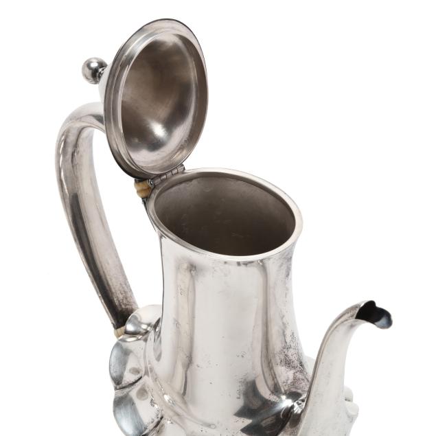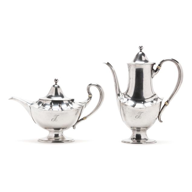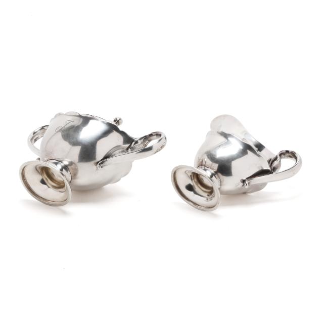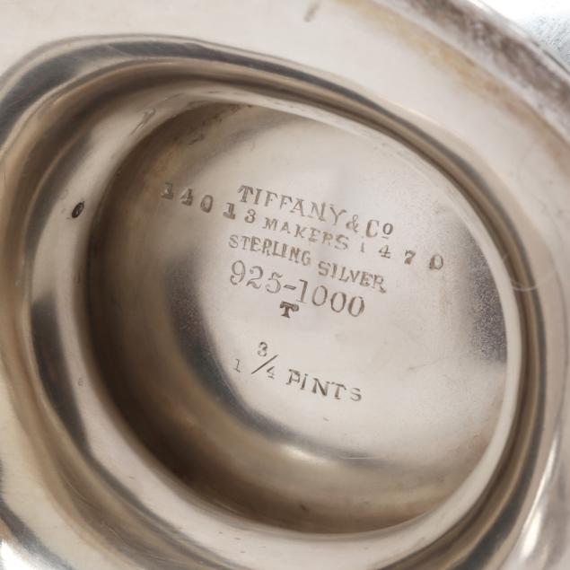 Period mark circa 1892-1902, directorship of Charles L. Tiffany, pattern number 14013; includes a coffee pot (10 1/2 x 8 1/2 x 4 1/2 in.); teapot (7 x 10 x 5 in.); creamer; and sugar bowl; all with uniform "L" monogram.