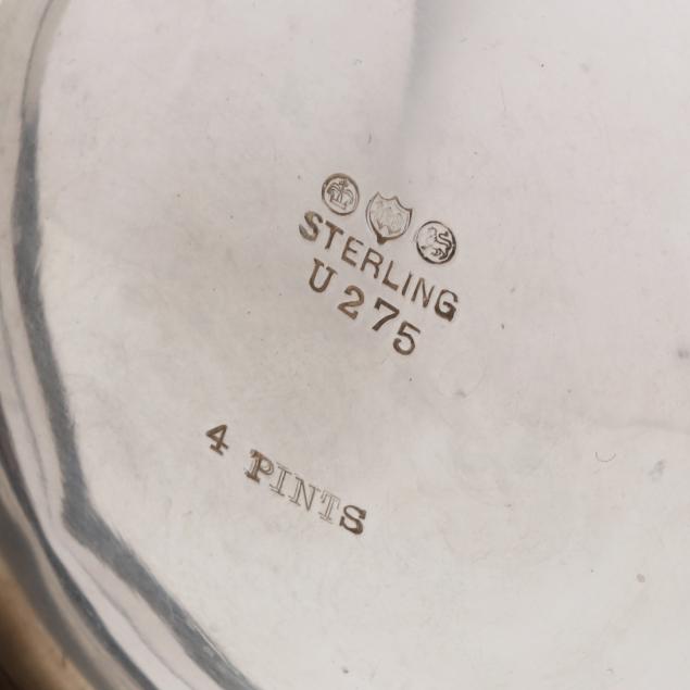 Pattern number U275, 4 pint capacity, featuring a scrolled handle and stepped foot, not monogrammed.