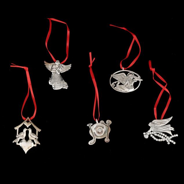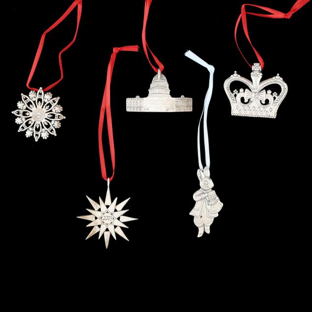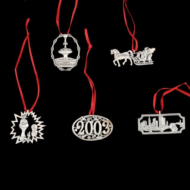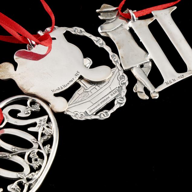 Late 20th-early 21st century, various motifs including figural, snowflake, year, and/or adage, all stamped "STERLING" or "925" to the reverse along with Hand and Hammer (H & H) stamp, with ribbon tie, presented within a fitted glass case.