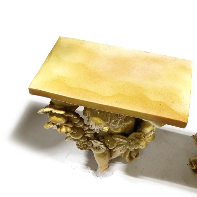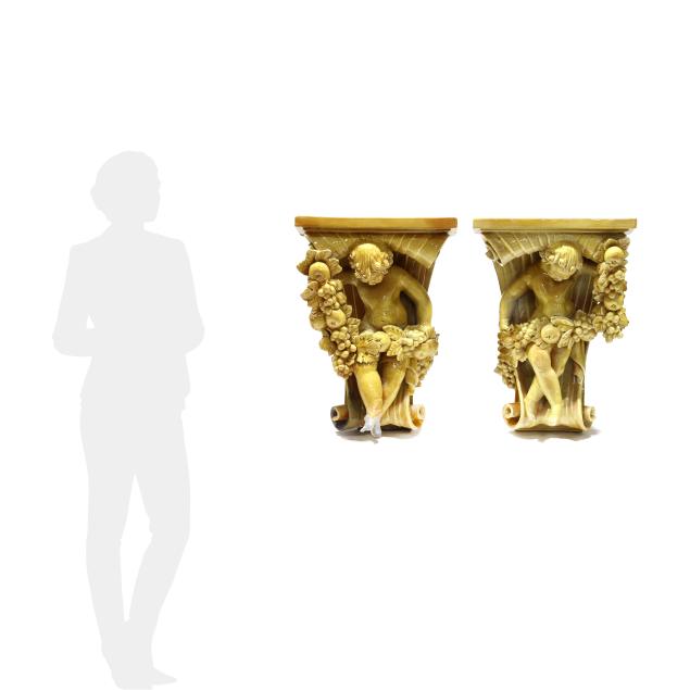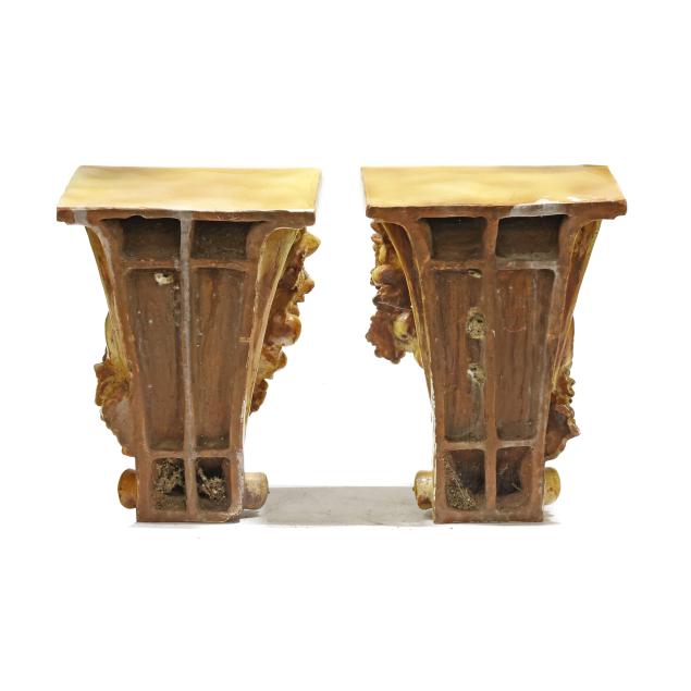 Private Collection of a Lady, Aiken, South Carolina One bracket in good condition; the other with loss and surface repairs to feet and lower edge.