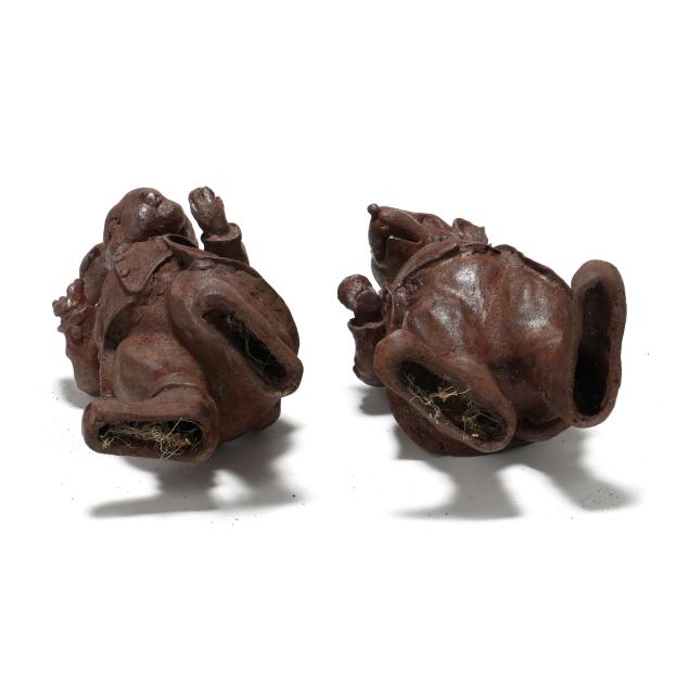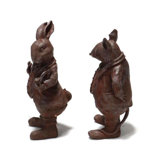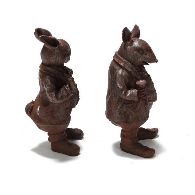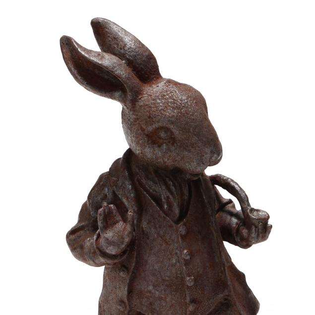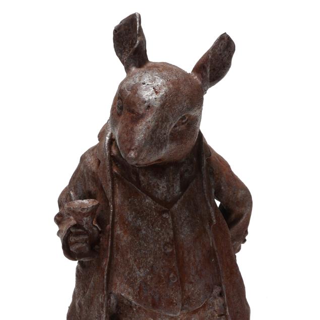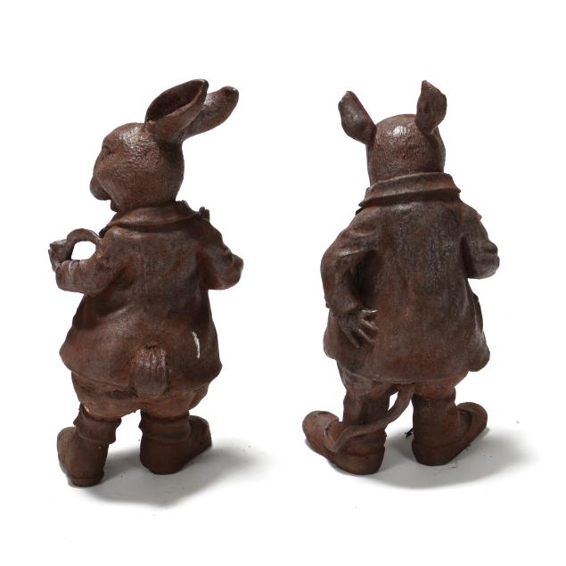 Late 20th century, well cast iron standing forms of a dapper dressed hare and molding holding a smoking pipe and martini glass.