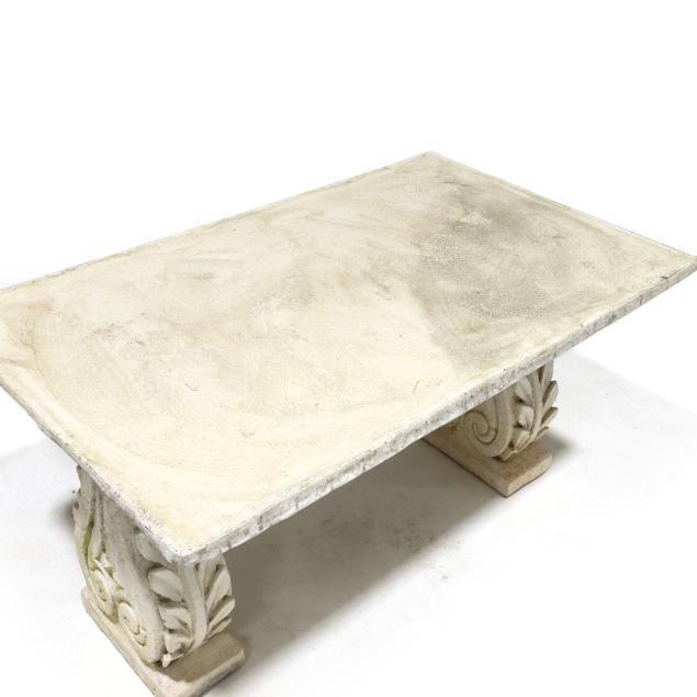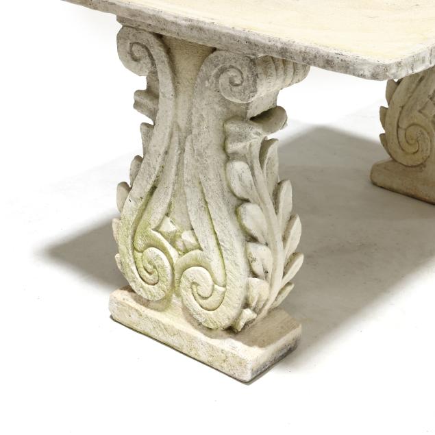 Late 20th century, three part form, rectangular top set on two lyre shaped pedestals with acanthus leaf.