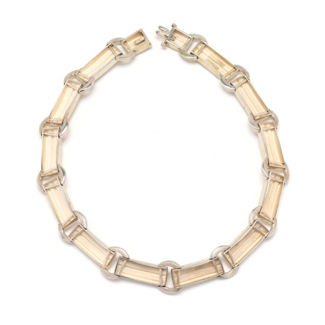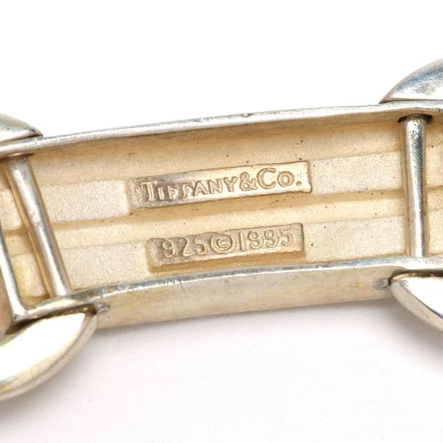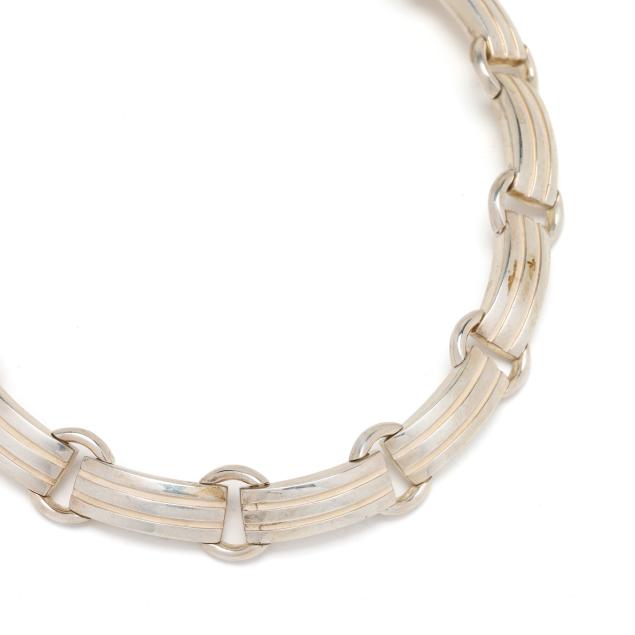 Circa 1995, the silver link necklace with geometric recessed motif, completed with an integrated box clasp, signed, dated, and stamped 925.