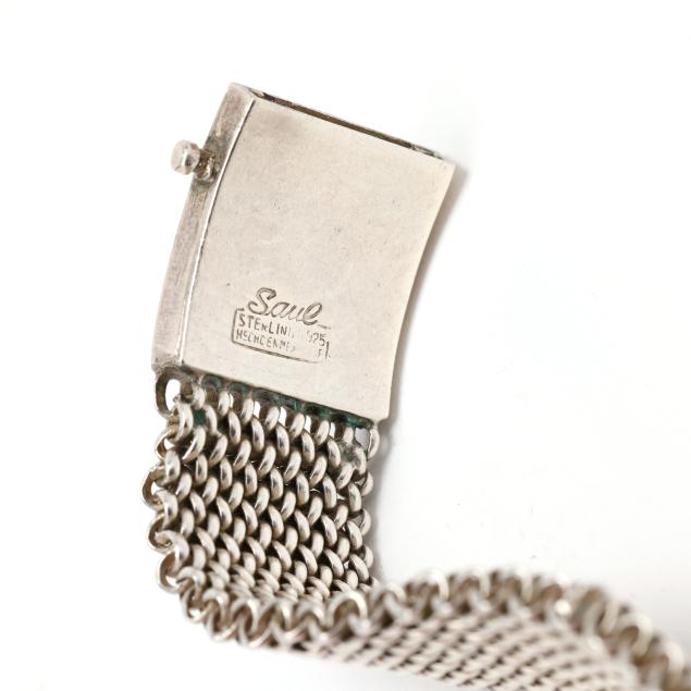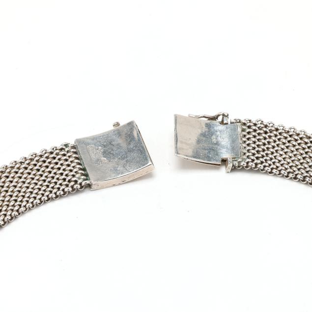 The silver mesh necklace completed with a box clasp and figure eight safety, signed and marked Sterling 925 / Hecho en Mexico.