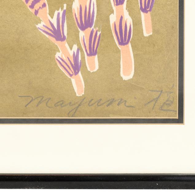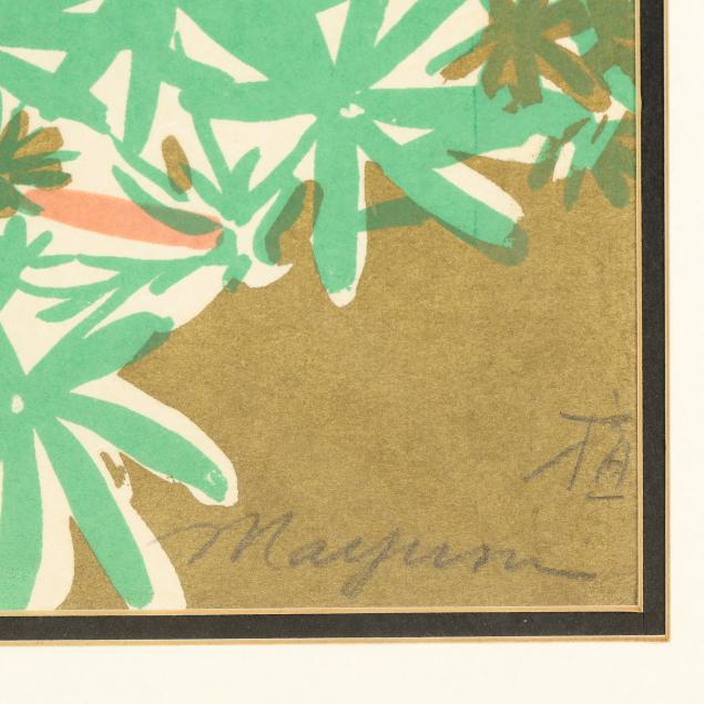 Oda Mayumi is a contemporary female Japanese artist best known for her poetic woodblock prints and mixed-media works that explore memory, femininity, and the natural world. Emerging in the postwar period, she developed a distinctive visual language marked by delicate line, subtle color, and an introspective, lyrical sensibility, often blending traditional printmaking techniques with a modern personal iconography.