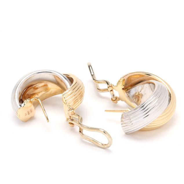 Bi-Color Gold Crossover Motif Hoop Earrings