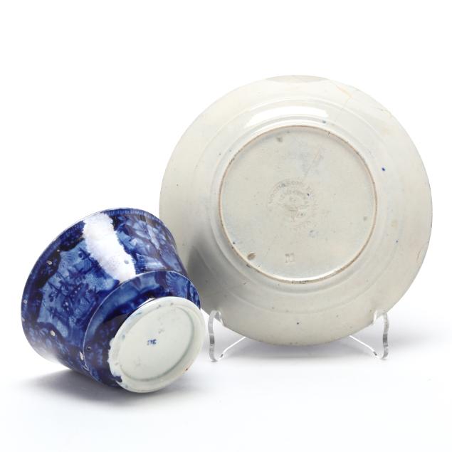 From the Estate of the late Patricia W. Capps, Winston Salem, North Carolina Plate with break and repair and associated restoration, mainly visible to underside, small chip and repair to rim; the cup with hairline to interior, scattered small nicks mainly to rim.