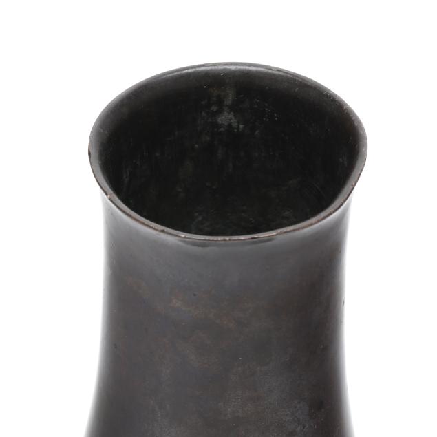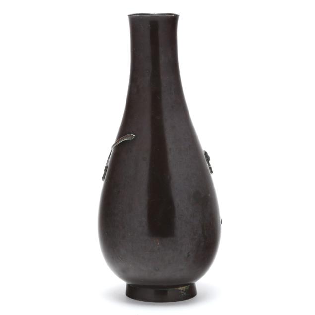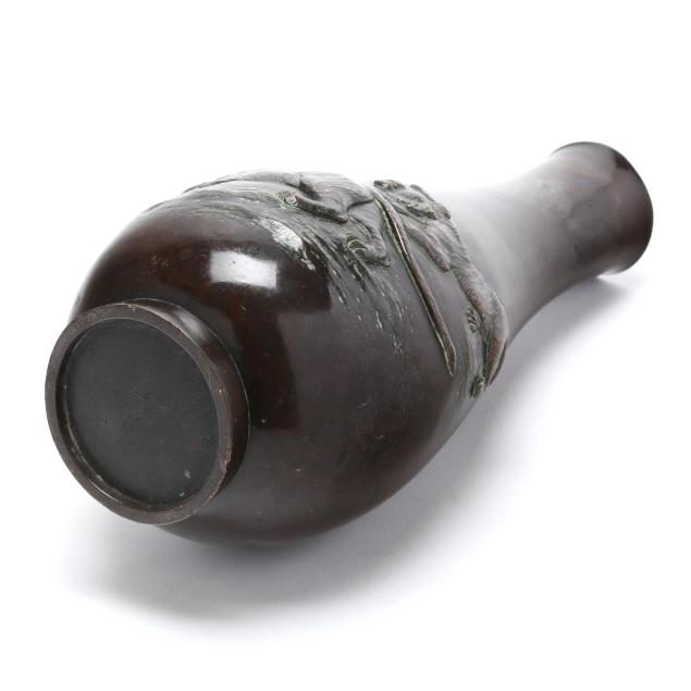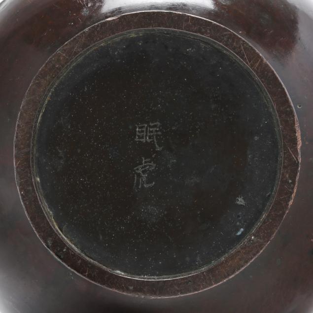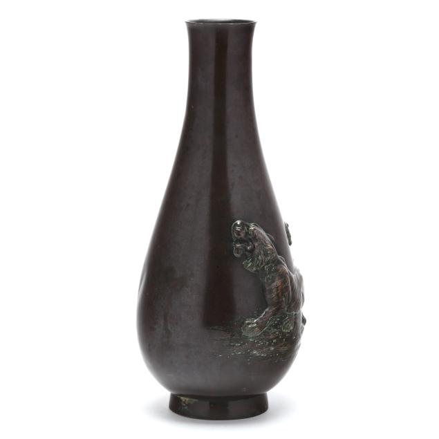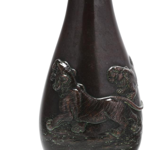 Meiji period (1868-1912), elegantly cast bulbous bronze vase with a pair of tigers, underside with two character mark in Japanese.