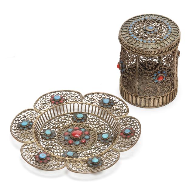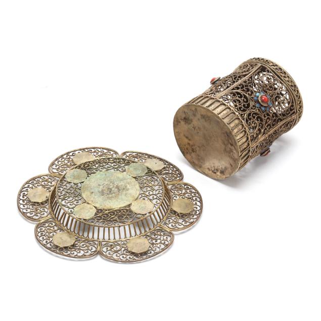 three-tibetan-inlaid-brass-filigree-dresser-objects