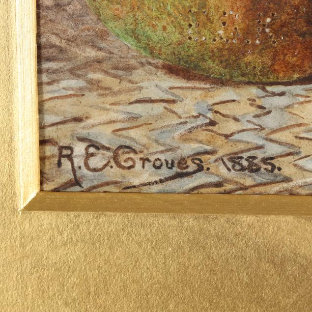 Watercolor on paper, 1885, signed and dated to lower left, matted in a period gilt frame below glass.